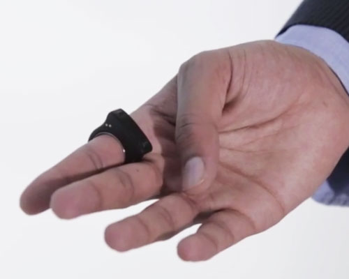 Dans la lignée des bijoux connectés, plusieurs bagues se retrouvent sur le marché. Par exemple, la FingerReader du Fluid Interface Group au MIT Media Lab peut scanner un texte et le lire à voix haute. Elle est très pratique pour des personnes malvoyantes qui n’ont alors plus réellement besoin de l’écriture en braille. Pour ce faire, la bague récolte les informations de mouvement, sous forme de petites vibrations, et ainsi prévient l’utilisateur malvoyant s’il s’éloigne du texte ou s’il saute par inadvertance des lignes. Elle peut aussi traduire un texte dans une langue étrangère et donc facilite son apprentissage. Un autre exemple est la bague Nod de Nod Inc qui récolte les commandes gestuelles de son porteur et les communique via Bluetooth à différents appareils intelligents (p.ex. smartphone, télévision).