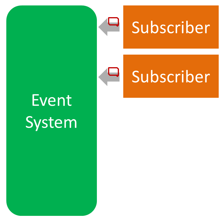 Op een bepaald moment kan een subscriber het Event systeem contacteren om zijn interesse te uiten in een welbepaald Event. Vanaf dan is het zo dat, elke keer dit event voorkomt, de subscriber hiervan op de hoogte zal worden gebracht. Dit laatste gebeurt wanneer een publisher op zijn beurt het Event systeem inlicht over een door hem gegenereerd event. Dit laatste wordt ook wel “to fire an Event” genoemd: een Event wordt als het ware afgevuurd. De subscribers hebben dan de verantwoordelijkheid om het Event af te handelen (to “handle an Event”). Naast inschrijven, is het voor subscribers ook mogelijk zich opnieuw uit te schrijven voor een Event, een beetje zoals met een nieuwsbrief.