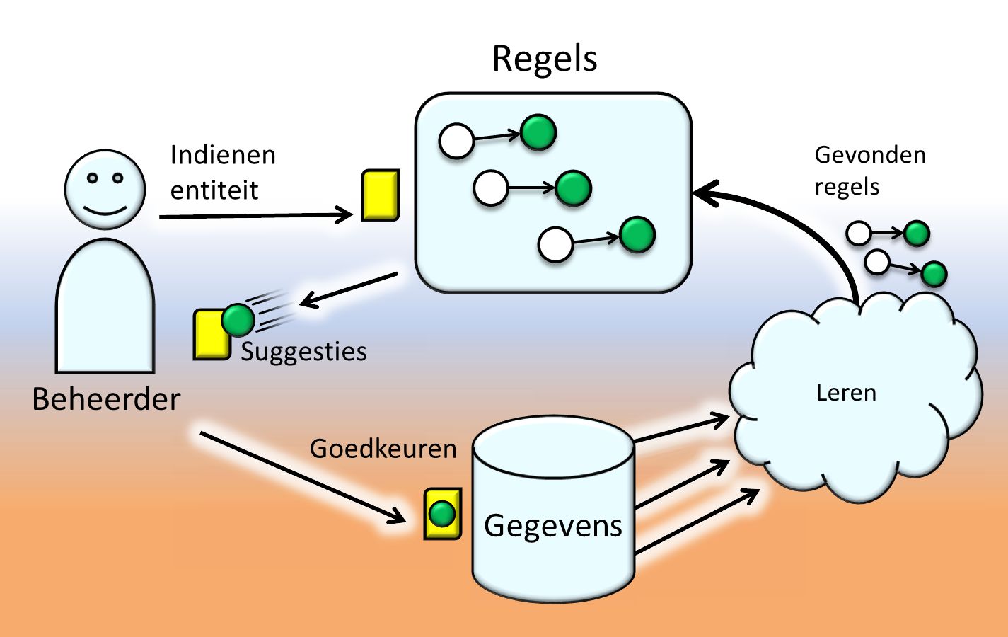 Geen bijkomende training gegevens nodig Regels kunnen afgeleid worden uit bestaande gestructureerde bronnen omdat we op zoek gaan naar patronen die daar ingebed zitten en de verbanden tussen die patronen. Het leerproces kan daarom op de achtergrond gebeuren, zonder expliciete feedback te hoeven vragen aan beheerders.