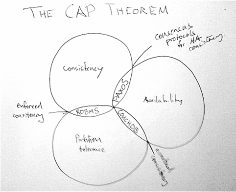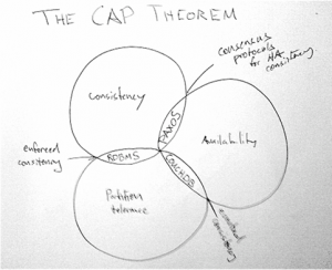 In any case, even when no parts of this network go down, it might take a while for a change to propagate throughout the entire system. Hence, the eventual state of consistency. This is ok, even for transactions, as long as mechanisms are in place to deal with any temporary inconsistencies.
