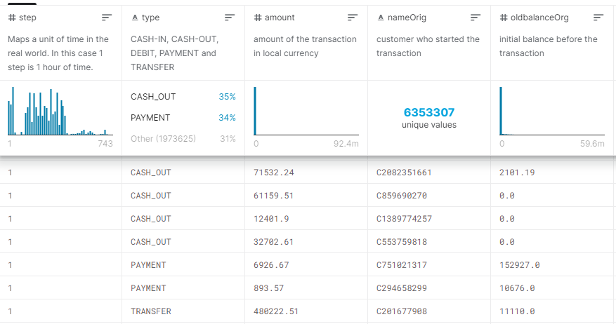 Voorbeeld van een synthetische dataset om AI-modellen voor fraudedetectie te trainen. Bron: Kaggle