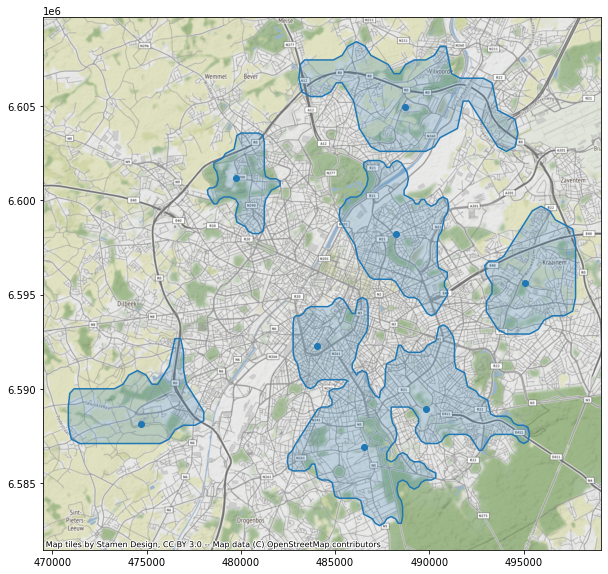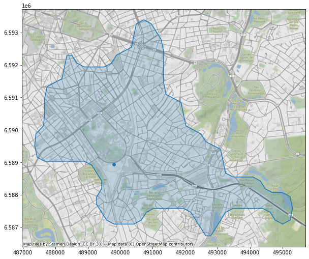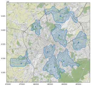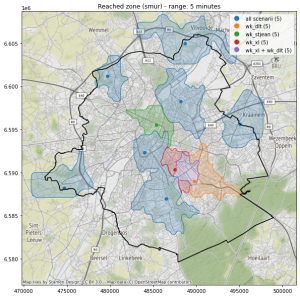 Le code source ayant soutenant l’analyse présentée ci-dessous est disponible sur https://github.com/SmalsResearch/GISAnalytics, notebook “MultiPoint_Reachability”, ou sur https://nbviewer.jupyter.org/github/SmalsResearch/GISAnalytics/blob/main/MultiPoint_Reachability.ipynb).