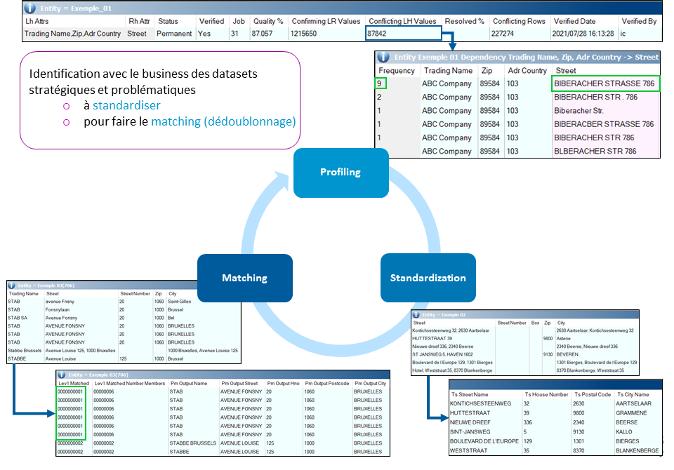 Figure 2 : Profiling, standardisation et matching : les trois familles de fonctionnalités majeures et itératives.