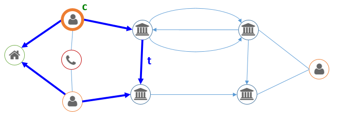 Dans le secteur de la lutte contre la fraude, on pourrait être intéressé par les personnes ayant effectué des virements vers des personnes ayant été convaincues de fraude par le passé, voire vers personnes vivant à la même adresse que des personnes négativement connues :