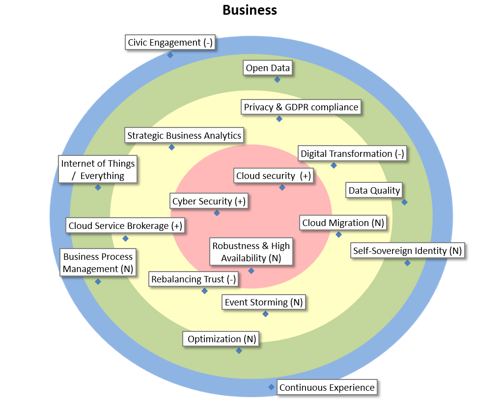 | Open Data | Data interoperability based on documented “open data” for citizens, enterprises, … (and in some cases based on web semantics norms) |